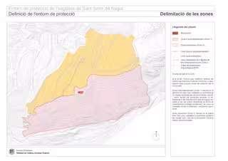 La llei vigent obliga a delimitar dues zones que protegeixen l'entorn, la zona 1 engloba el perímetre de 20 metres del Bé d'Inters Cultural i les parcelles adjacents i defineix els criteris per preservar la imatge del monument i el seu entorn més proper.