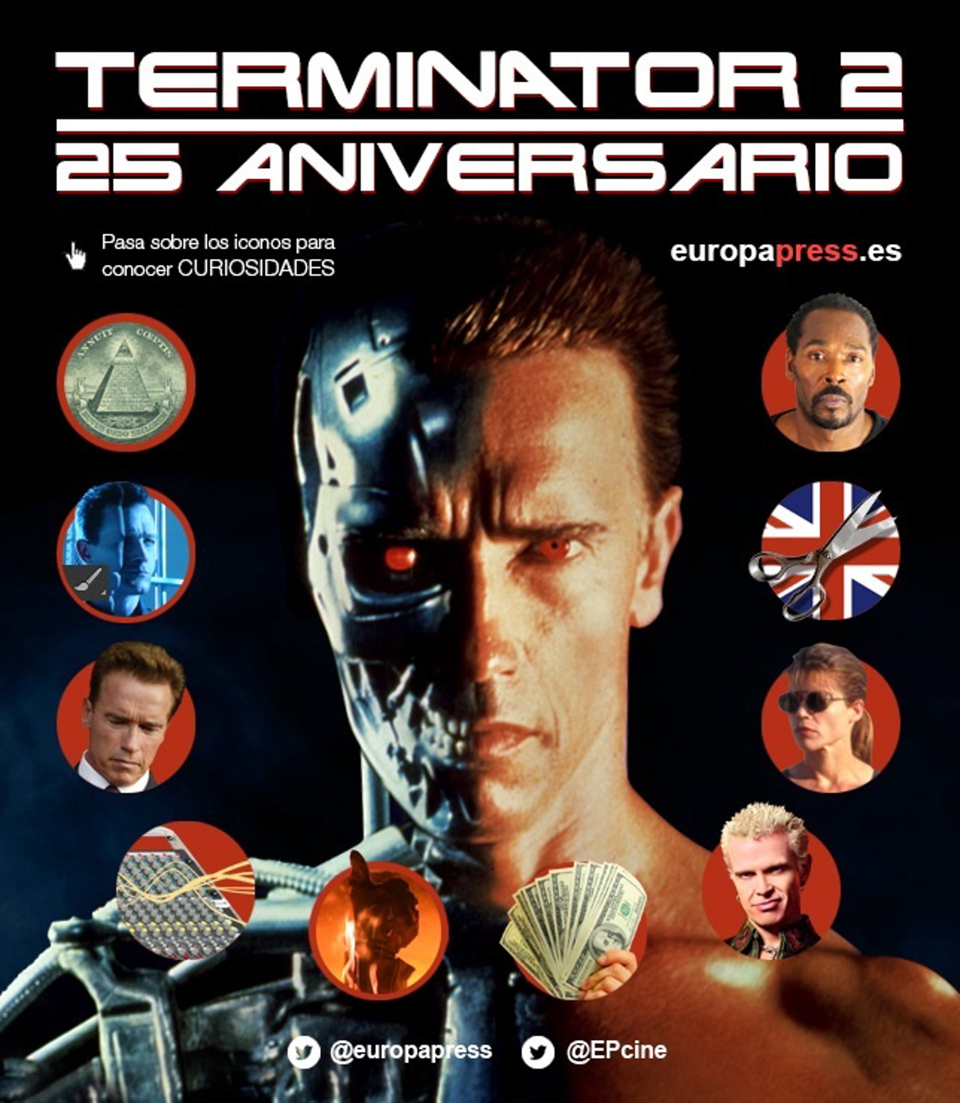 Aquest any 'Terminator 2: El judici final' està d'aniversari. Fa 25 anys que es va estrenar la segona entrega de la saga protagonitzada per Arnold Schwarzenegger i que va dirigir James Cameron. Per commemorar la data, la pel·lícula tornarà a estrenar-se als cines, però en versió 3D.