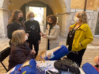 La delegada del Govern a Girona, Laia Cañigueral, visita la marató d'encaixos de bolillos de l'Associació de Puntaires de Girona