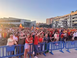 Barcelona i Badalona (Barcelona) segueixen aquest diumenge a la nit la final de l'Eurocopa, que se celebra a Alemanya amb el partit Espanya-Anglaterra, des de sengles pantalles gegants.