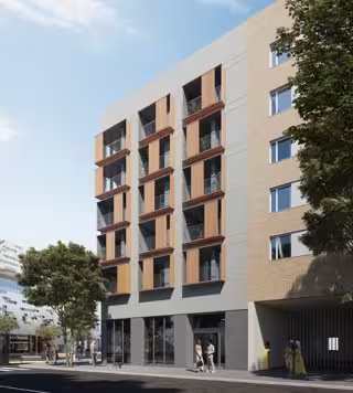 El projecte és obra de Naxal Arquitectura, SLP, compta amb dues alades de planta baixa i cinc plantes, i destaca per la sostenibilitat i eficincia energtica: tots els pisos donen al carrer i a interior d'illa, de manera que compten amb ventilació creuada i la mxima llum possible.