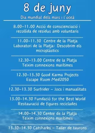 De 8 a 11 es farà una recollida de residus amb tres punts de trobada: a la platja de Sant Miquel, Somorrostro-Espigó del Gas i Nova Icària, i, posteriorment, començaran les activitats, jocs i tallers a la platja del Somorrostro.