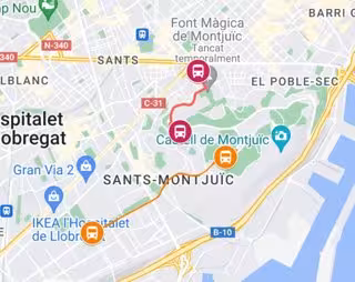Un dels busos connectar l'estadi amb la plaa Espanya i l'altre amb el recinte Gran Via de Fira de Barcelona; també s'hi pot arribar amb les línies de bus 13, 55, 125 i 150, i des de l'estació del metro de Parallel (línies 2 i 3) enllaant-la amb el funicular de Montjuc, informa TMB en un comunicat.