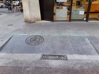A l'encreuament de Travessera de Grcia amb el carrer Muntaner s'ha installat una franja de llums LED a la vorera, davant del pas de vianants, que reprodueix a terra el color del semfor vertical per alertar els transeünts.