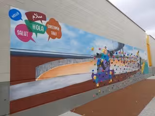 El rocdrom inclou dos murals artístics de 15 metres de llarg que representen elements emblemtics del barri, sobre el qual s'han collocat les peces de cauchú que permeten escalar la paret.