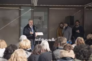 L'alcalde de Barcelona, Jaume Collboni, ha entregat aquest dissabte les claus de 85 habitatges públics amb serveis per a gent gran al barri de la Trinitat Vella de Barcelona.