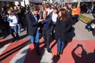 El conseller de Drets Socials de la Generalitat, Carles Campuzano, i la presidenta de l'Associació Catalana de Municipis (ACM), Meritxell Budó, han visitat aquest dissabte la 173 Fira de la Candelera de Molins de Rei (Barcelona), que han elogiat per la seva organització.