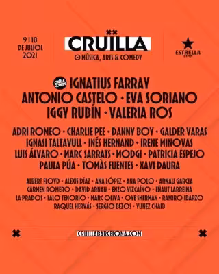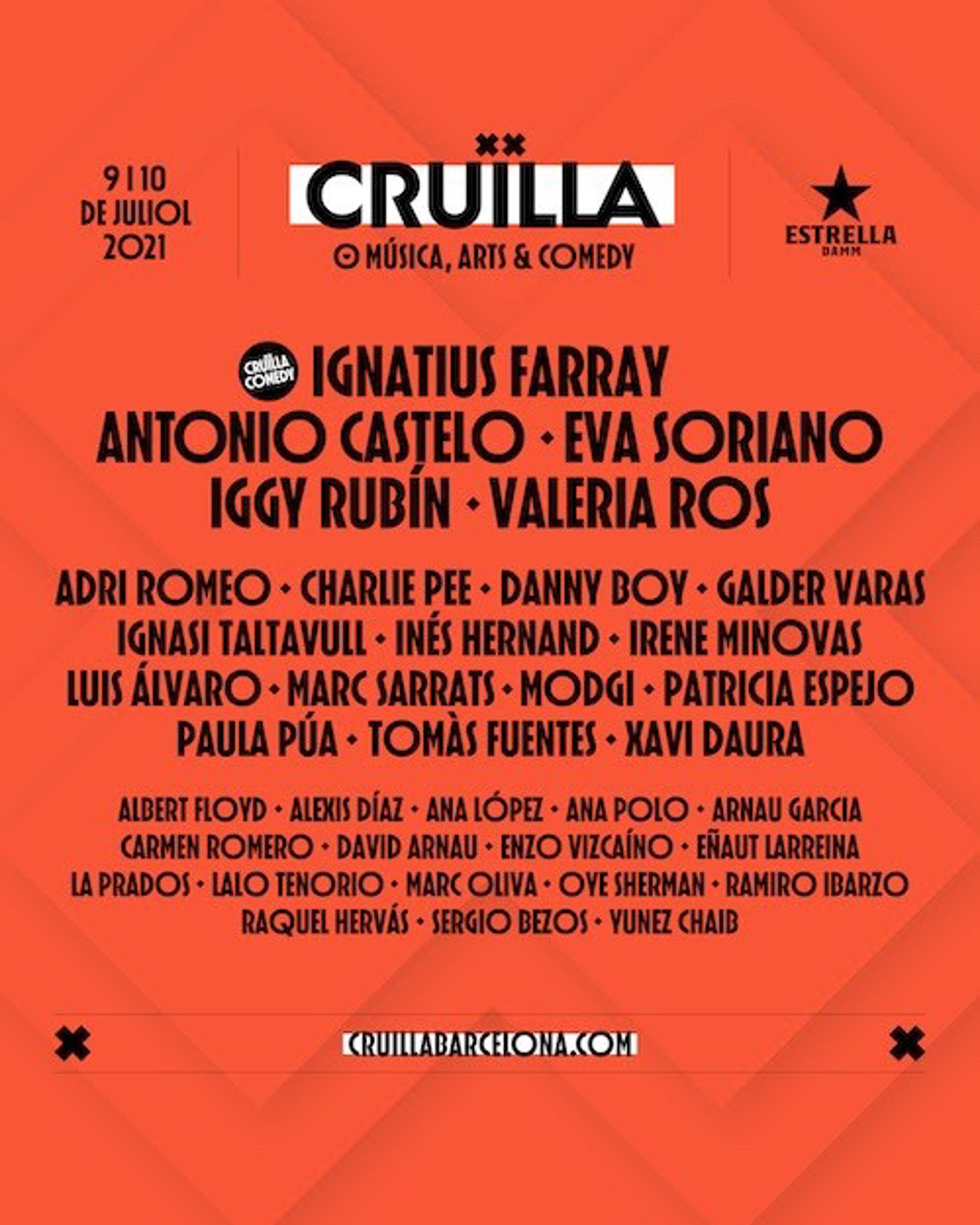 Els humoristes Ignatius Farray, Antonio Castelo, Eva Soriano, Iggy Rubin, Valeria Ros, Adri Romeo, Charlie Pee i Danny Boy participaran en el cicle de comdia del Festival Crulla, el Crulla Comedy, que se celebrar del 8 al 10 de juliol en el Parc del Frum de Barcelona.
