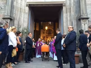L'espai no ha pogut acollir tots els seus amics i col·legues, i l'església ha quedat abarrotada des de l'obertura de portes, minuts abans de començar el funeral.
