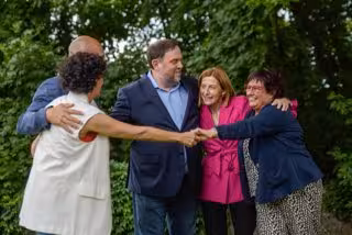 El líder d'ERC, Oriol Junqueras, l'expresidenta del Parlament Carme Forcadell, i els exconsellers Raül Romeva i Dolors Bassa s'han reunit aquest dimecres amb la secretria general del partit, Marta Rovira, a Ginebra "després de gairebé 4 anys forosament separats per la presó i l'exili".