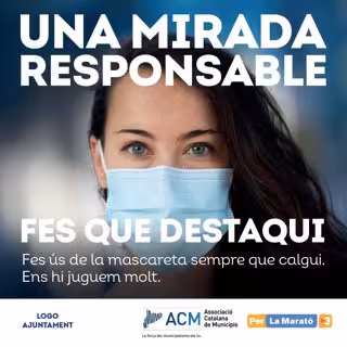 L'Associació Catalana de Municipis (ACM) s'ha sumat a La Marató de TV3 d'aquest any, que se celebrar aquest diumenge dedicada al coronavirus, amb la campanya 'Fes que destaqui' per sensibilitzar la ciutadania sobre l'ús responsable de la mascareta i de les mesures de prevenció contra la pandmia.