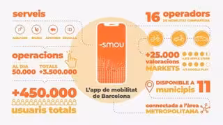 Smou és l'aplicació de mobilitat de Barcelona que uneix en un mateix espai diferents serveis de mobilitat personal i integra l'estacionament de les zones blaves i verdes de Barcelona i de part de l'rea metropolitana, el pagament i l'obertura automtica per matrícula dels aparcaments B:SM, la reserva i recarrega de la xarxa pública elctrica Endolla Barcelona i el servei del Bicing.