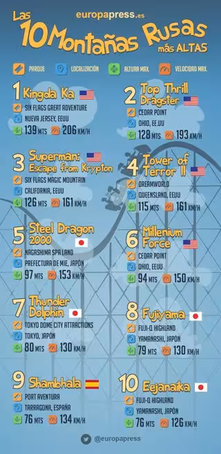 Saps quines són actualment les muntanyes russes més altes del món?