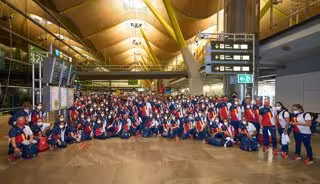 Encapalant l'expedició es trobaven el president del Comit Olímpic Español (COE), Alejandro Blanco, i la secretria general de l'organisme, Victoria Cabezas, que van destacar la pacincia i el bon humor dels esportistes després que el vol previst inicialment per les 16.25 del dissabte es retardés gairebé set hores per excés de pes i a causa de les elevades temperatures previstes per a l'hora de l'enlairament.