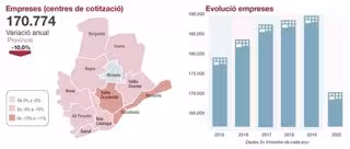 El nombre d'empreses ha decrescut un 10%, la qual cosa suposa un 18.963 menys respecte al mateix període de l'any anterior, i situa el nombre total d'empreses en 170.774.