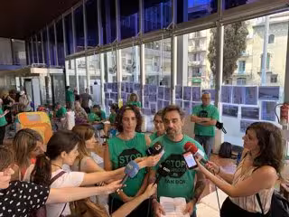 Després de la seva entrada a l'Ajuntament, membres de diversos grups municipals han abordat l'assumpte amb els manifestants, que han installat matalassos i llits inflables al vestíbul i han pintat diverses pancartes fora del consistori.