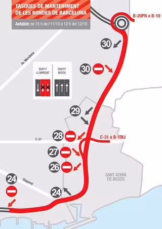 La circulació quedar restringida entre aquest diumenge i aquest dilluns a només un carril i l'AMB informar als usuaris de les restriccions i els itineraris alternatius; no obstant aix, es recomana l'ús de vies alternatives.