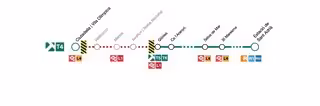 La línia T4 de la xarxa Trambess de Tram quedar interrompuda aquest diumenge entre les parades de Ciutadella | Vila Olímpica i Glries, de les 8 a les 20 hores, per les tasques de reparació d'una canonada del servei d'aigües municipals que afecta la plataforma del tramvia al costat de la parada Wellington.
