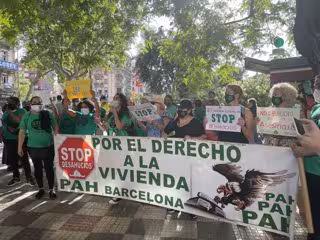 La concentració ha comenat a les 18.30 hores, i ha estat organitzada per 'Plataforma d'Afectades per la Hipoteca' i 'Grup d'Habitatge de Sants', i s'ha unit a la convocatria el 'Sindicat de Llogateres i Llogaters'.