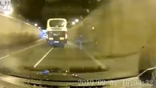 El vídeo, publicat a les xarxes socials i que marca l'1 de febrer com a data, est gravat des de l'interior d'un vehicle i mostra una persona en patinet que circula pel voral, a la dreta d'un autocar i del vehicle que enregistra els fets.