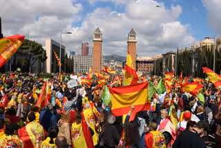 Barcelona.-El líder de Vox, Santiago Abascal, ha assegurat aquest dissabte a Barcelona que reclamar a la fiscalia la detenció del president de la Generalitat, Quim Torra, a qui ha descrit com un "colpista" que "provoca agressions". "Impulsarem a través de la fiscalia la detenció de Torra, i l'únic que oferirem ser un judici just", ha dit Abascal durant una concentració de Vox a Barcelona que ha aplegat 5.000 persones, segons la Gurdia Urbana, i 15.000, segons els organitzadors. Segons Abascal, "l'únic cordó sanitari" que cal és "contra el partits separatistes", i no contra la seva formació d'ultradreta. Abascal ha apostat per dissoldre els Mossos i "rescatar els lleials" per incloure'ls a la policia espanyola.