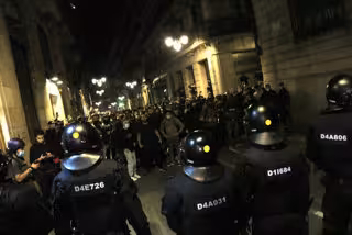 La policia ha dispersat els manifestants i n'ha arraconat alguns a l'entorn del carrer Jaume I. Molts, per, han fugit corrent cap a Via Laietana, i els Mossos han comenat a perseguir-los amb les furgonetes.Posteriorment, i segons han explicat els Mossos d'Esquadra, els concentrats han fet barricades i han seguit llanant petards i pots de fum contra la línia policial. També hi ha hagut mobiliari urb cremat, principalment contenidors. Una persona ha resultat ferida per un cop de pedra al cap.Al carrer Jaume I han fet una petita barricada amb blocs de pedres i han encs un foc. S'han repetit petites barricades amb jardineres al final del carrer. A Via Laietana han encs dos focs, un que ha cremat un patinet elctric i, mes endavant, un contenidor.Durant la concentració s'han cridat consignes com ara 'llibertat', 'volem treballar', 'Govern dimissió', 'el pueblo unido jamas será vencido', 'a por ellos' o 'izquierda y derecha son la misma mierda'. Molts dels concentrats no duien mascareta o la duien mal posada.
