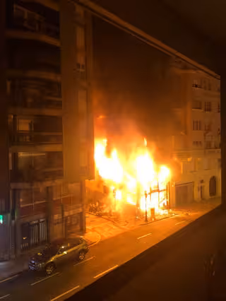 Barcelona.-Els Bombers de Barcelona han apagat aquesta matinada un incendi que ha cremat un bar i un pis al carrer Balmes número 314. No hi ha hagut ferits, per dos vens han estat atesos per ansietat, segons han confirmat a l'ACN fonts municipals. S'ha desallotjat tota la finca. Els vens han alertat els serveis d'emergncia passades les cinc de la matinada. Han treballat en el foc deu dotacions dels bombers. Els vens expliquen que han sentit una forta explosió i després han vist una gran flamarada. El foc era molt virulent. Una dona ha explicat al 3\/24 que ha vist com una persona encaputxada llenava un artefacte explosiu a l'interior del local cremat. Els Mossos d'Esquadra han obert una investigació.