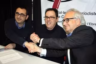 La Fundació Carulla, la Llibreria Serret de Vall-de-roures i Òmnium Ebre signen convenis per compartir sinèrgies