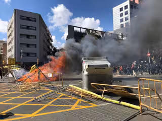 Barcelona.-Un grup de manifestants antifeixistes han llenat pedres, ous i pintura contra els Mossos d'Esquadra en el cordó policial que els separa de la zona on aquest migdia se celebra una concentració de Vox a Barcelona. Els Mossos han desplegat un ampli dispositiu de seguretat a la zona de Plaa Espanya per separar els antifeixistes de la ultradreta i evitar que arribessin a la zona de l'Avinguda Maria Cristina, per alguns manifestants els han tirat pedres, ous i pintura i han organitzat, també, barricades. També s'han cremat contenidors a l'alada de la parada de metro 'Tarragona'. La policia ha aconseguit dispersar els manifestants, per la situació és tensa.