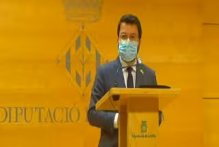 Captura de pantalla de la intervenció del vicepresident amb funcions de president, Pere Aragons, a la Diputació de Lleida, el 22 d'octubre del 2020. (Horitzontal) - Cedida per la Diputació de Lleida (ACN)