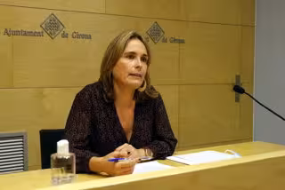 La regidora de Drets Socials de l'Ajuntament de Girona, Núria Pi, aquest 22 d'octubre del 2020 durant la roda de premsa (Horitzontal) - Xavier Pi (ACN)