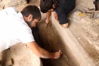 El cos ha aparegut a l'interior d'un sarcfag de pedra molt ben tancat i és el primer enterrament d'aquestes característiques que es localitza a l'excavació