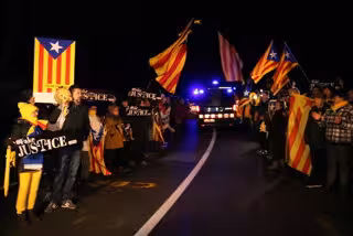 El Catllar.-Carme Forcadell ja ha sortit de la presó de Mas d'Enric de camí cap a Brians 2, des d'on ser traslladada amb la resta de presos independentistes cap a Madrid per ser jutjada per l'1-O. El vehicle dels Mossos que transporta l'expresidenta del Parlament ha abandonat el centre penitenciari del Catllar a les 6.45 hores, acompanyat d'una comitiva amb altres cotxes i furgonetes. Més d'un centenar de persones s'han concentrat a uns 200 metres de l'accés a la presó per acomiadar l'expresidenta del Parlament. Portaven estelades i han cridat consignes com 'Llibertat' i 'Independncia'. La carretera d'accés al centre est plena de vehicles aparcats al voral en gairebé dos quilmetres.