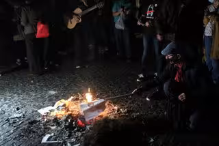 Barcelona.-Un centenar de persones s'han concentrat aquest dijous a la plaa de Sant Jaume de Barcelona per cremar fotografies de Felip VI, seguint la convocatria de l'Assemblea Nacional Catalana (ANC) davant els ajuntaments d'arreu de Catalunya en la vigília de la visita del rei a la capital catalana. Els participants a la concentració han cridat proclames com "Catalunya no té rei", "Mor al Borbó", "Borbons, tornin els milions" o "El rei és de Vox"  mentre s'arremolinaven al voltant de la foguera per anar cremant les imatges. Felip VI participar aquest divendres a la clausura de la Barcelona New Economy Week, juntament amb el president del govern espanyol, Pedro Sánchez, i enmig de convocatries dels Comits de Defensa de la República (CDR).
