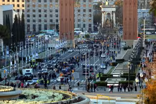 Barcelona.-Centenars d'independentistes s'han concentrat aquest diumenge a la tarda davant del Museu Nacional d'Art de Catalunya (MNAC), a la falda de Montjuc, per protestar per la visita del rei Felip VI al sopar inaugural del MWC. Antiavalots dels Mossos han 'blindat' l'entorn de l'edifici i no han deixat que els manifestants passessin del penúltim tram d'escales d'accés al museu des de les fonts de Montjuc. Aix ha provocat que els independentistes, amb xiulets, trompetes i cassoles tornessin fins la plaa Espanya, on s'havien concentrat inicialment, i han tallat el trnsit.