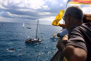 Badalona.-Centenars d'embarcacions, velers, motores, pneumtiques, fins a caiacs o gent nedant han arribat aquest diumenge al migdia en diversos punts del litoral catal entre Colera i Sitges. L'objectiu de l'acció és "internacionalitzar l'afer catal" i "recuperar l'estelada com a bandera aglutinadora", segons ha explicat David Ferrer, portaveu de la "Onada per la independncia". Els organitzadors han quantificat la participació de centenars de persones i han explicat que hi han participat un total de 120 patrons d'embarcacions. L'eurodiputada i companya de Raül Romeva, Diana Riba, companya de Raül Romeva, ha destacat el simbolisme del Pont del Petroli de Badalona, on han arribat part de les embarcacions i diversos nedadors amb les lletres de la paraula "independncia" entre els quals hi havia dos dels fills de Romeva.
