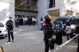Els Mossos d'Esquadra han blindat l'accés a l'edifici dels Jutjats muntant un cordó policial.