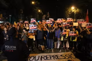 Barcelona.-Centenars de persones s'han concentrat davant la caserna de la Gurdia Civil a Travessera de Grcia (Barcelona), aquest dilluns al vespre. "Tots som CDR", "no tenim por", "prou repressió" o "fora la policia espanyola" han estat alguns dels cntics dels manifestants. Convocats pels Comits de Defensa de la República (CDR), s'han aplegat davant la caserna per protestar per les detencions dels nou independentistes -membres dels propis CDR-, avui al matí. Un cordó policial dels Mossos ha separat els concentrats de l'edifici de la caserna. La líder de JxCat a Barcelona, Elsa Artadi, i els diputats parlamentaris del mateix grup Pep Riera, Anna Tarrés i Saloua Laouaji han assistit a la concentració.