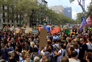 Barcelona.-El centre de Barcelona s'ha desbordat de gent aquest divendres a la tarda que han respost a la crida de 'Fridays for future' per manifestar-se davant l'emergncia climtica i reclamar solucions als responsables de les institucions. La manifestació de la capital catalana és una de les moltes que s'han organitzat avui arreu del planeta. La convocatria era per a les sis de la tarda a Jardinets de Grcia, per a aquella hora la capalera s'ha hagut d'avanar fins al passeig de Grcia per la quantitat de gent que hi havia acumulada a l'indret, que no permetia arribar fins a aquest punt. Els manifestants són majoritriament joves, per també hi ha persones grans i nens amb famílies, així com membres d'entitats diverses enmig d'una ambient eminentment festiu.
