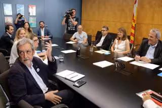 Barcelona.-Representants dels grups municipals de BComú, PSC, ERC, JxCat, C's i PP han arribat a les 13 hores per tal de comenar la primera reunió dels grups municipals després de les eleccions, una trobada prvia a la Junta de Portaveus. Durant la reunió es revisaran els procediments per tal d'elaborar durant les properes setmanes el cartips municipal i es plantejar si es torna a collocar un lla groc a la faana de l'Ajuntament de Barcelona. En aquesta primera reunió hi han participat Janet Sanz, Eloi Badia i Jordi Martí (BComú), Laia Bonet (PSC), Jordi Coronas i Montse Benedí (ERC), Mari Luz Guilarte i Paco Sierra (C's), Neus Munté i Elsa Artadi (JxCat), i Oscar Ramírez (PP). Dissabte es van fer uns nomenaments d'estructura mínima per tal de funcionar de manera provisional fins que no hi hagi el cartips.