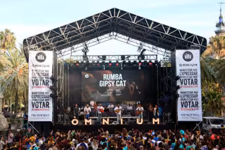Barcelona.-Els concerts de la Festa per la Llibertat dmnium Cultural han posat un any més el punt final als actes de la Diada Nacional a Barcelona. Al passeig de Lluís Companys, milers de persones shan aplegat després de la manifestació independentista per tancar la jornada amb les actuacions de Rumba Gipsy Cat, Mishima i Buhos. Mishima ha fet un reps generós del seu repertori amb un David Carabén que no sha estalviat reflexions i alguna petició a lindependentisme: Ens hem de mantenir units fins al final, ha reclamat després dapostar per una resposta, com a poble, si cal amb un tsunami democrtic. Buhos sha reivindicat com a grup festiu davant dun públic molt jove i entregat en lúltim tram de la nit.