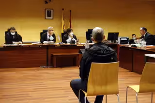 L'acusat, d'esquenes, davant el tribunal de la Secció Quarta de l'Audincia de Girona aquest 15 d'octubre del 2020. Pla general (Horitzontal) - Xavier Pi (ACN)