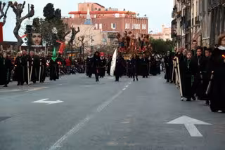 Tarragona.-Desenes de mils de participants, confrares, vestes i músics han tornat a fer lluir la vintena de passos de la processó del Sant Enterrament de Tarragona, després que l'episodi de forts vents de l'est que s'havia fet notar a la ciutat durant la tarda, hagi donat una treva aquest divendres a la nit. El Sant Enterrament, que organitza la Congregació de la Puríssima Sang, ha complert 469 anys de tradició. És la processó més antiga de Catalunya, l'acte principal de la Setmana Santa a la ciutat i hi participen unes 2.400 persones, de 12 confraries. Més de 20.000 persones han omplert els carrers de la Part Alta, molts vinguts de fora de Tarragona, per seguir fidelment la desfilada. Amb els anys, la processó ha canviat el silenci per so dels tambors que han fet retronar de nou el nucli histric de la ciutat.