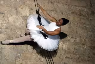 La dansa vertical de la companyia Delrevés ha seguit a la conversa inaugural amb una pea d'acrobcies espectaculars que s'han vist a la paret de la parrquia de Trrega