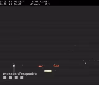 Lleida.-Els Mossos d'Esquadra van denunciar penalment dimecres un veí d'Aitona (Segri), de 20 anys i nacionalitat romanesa, com a presumpte autor d'un delicte contra la seguretat viria. Els fets van succeir durant un control de velocitat que la policia havia muntat al quilmetre 6,5 de la carretera A-22, dins el terme de Ramat (Segri), al municipi de Lleida. Cap a dos quarts de nou del vespre, el radar va detectar un turisme, amb matrícula espanyola, que circulava a 239 km\/h en un tram de carretera on la velocitat mxima permesa és de 120 km\/h. Els agents van denunciar el conductor per circular a una velocitat penalment punible. El conductor haur de comparixer, quan sigui requerit, davant el jutjat d'instrucció en funcions de gurdia de Lleida.