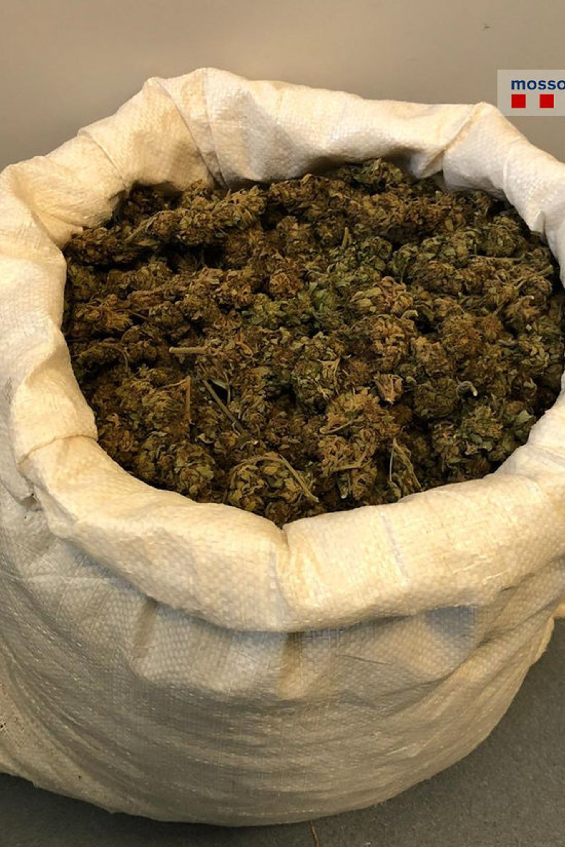 El sac amb els cabdells de marihuana que els Mossos van trobar en una furgoneta a Jafre, en una imatge cedida aquest 9 de novembre del 2020. (Vertical) - Cedida a l'ACN pels Mossos (ACN)
