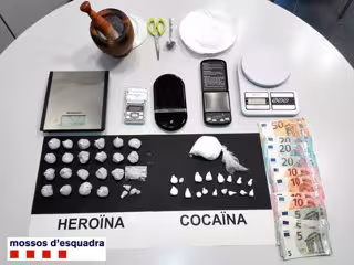 Els Mossos han registrat aquest dimarts el domicili de l'arrestat, situat al carrer d'Alfred Perenya de Lleida, on han localitzat 119 grams d'herona i 65 grans de cocana, a més de diferents embolcalls amb aquestes drogues com els que els agents li van trobar en el moment de la detenció. A l'immoble, la policia també ha trobat cinc bscules de precisió. El detingut, amb diferents antecedents per delictes contra la salut pública, est previst que passi a disposició judicial aquest dimecres.