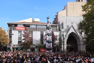 Els castellers de Sants oben plaa amb un 5 de 8 i els de Sant Cugat planten el 3 de 8