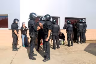 Cass de la Selva.-Els Mossos d'Esquadra han carregat aquest dimarts al matí per dispersar les persones que tallaven la C-65 a Cass de la Selva des de primera hora. El desallotjament s'ha produt inicialment sense incidents, per un cop han apartat els manifestants de la carretera, la línia policial ha continuat avanant cap a un polígon proper donant cops de porra a les persones concentrades. També han utilitzat les furgonetes per dispersar-les amb la tcnica del carrousel. Hi ha almenys set persones retingudes pels agents.