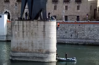 Tortosa.-Unitats especialitzades dels Mossos d'Esquadra han fet aquest dimecres una inspecció ocular al monument franquista de l'Ebre, a Tortosa, on aquest dimarts a la matinada es va produir una explosió i un incendi. Als volts de migdia, s'hi ha desplaat agents de la Unitat Aqutica i dels tcnics artificiers Tedax dels Mossos d'Esquadra, en una embarcació. Hi han recollit mostres per intentar esclarir quin tipus d'explosiu es va fer servir per provocar la deflagració. Vens de la zona van sentir una primera gran detonació abans de les explosions que van enregistrar amb imatges de telfon mbil. L'incendi va cremar durant tres quarts d'hora fins que es va apagar sol i s'hi haurien usat neumtics per allargar la combustió.
